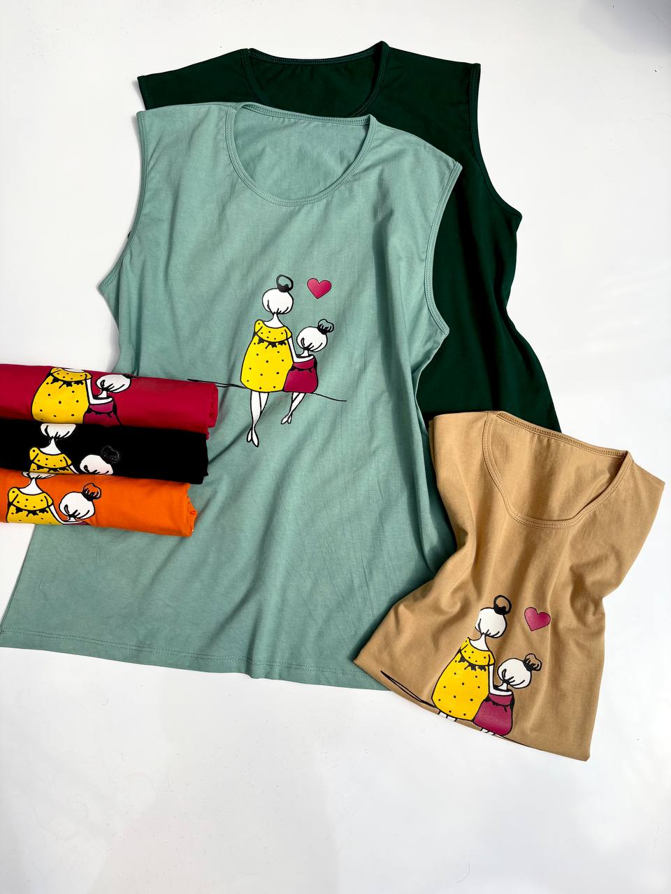 تاپ زنانه نخ پنبه یقه گرد لانگ چاپیناموجود