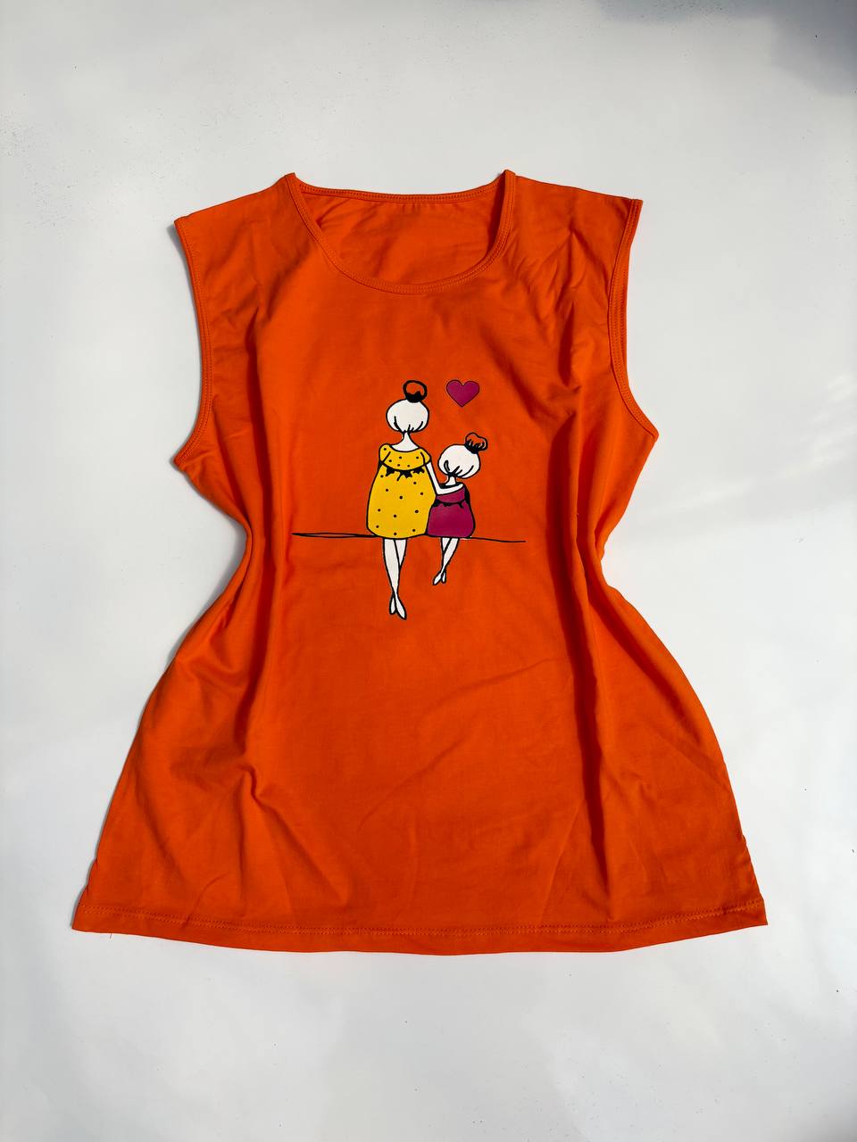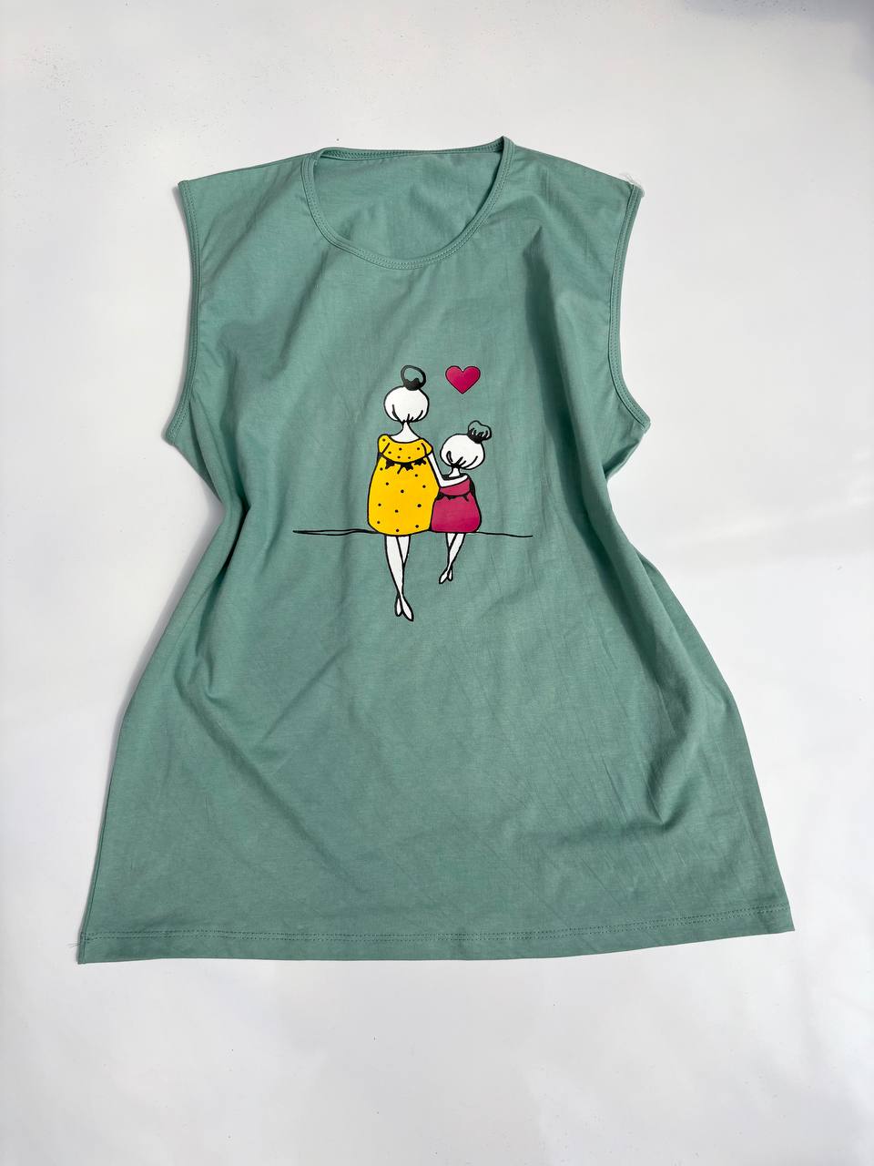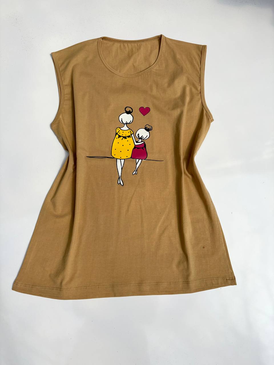 تاپ زنانه نخ پنبه یقه گرد لانگ چاپی